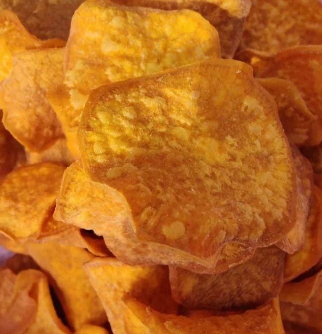 就这样,不到10分钟,一片片金黄焦香的脆片就诞生了。它不如商店卖的零食精致,边缘可能还有些不规则,但正是这份“手作感”,让它充满了亲切的温度。