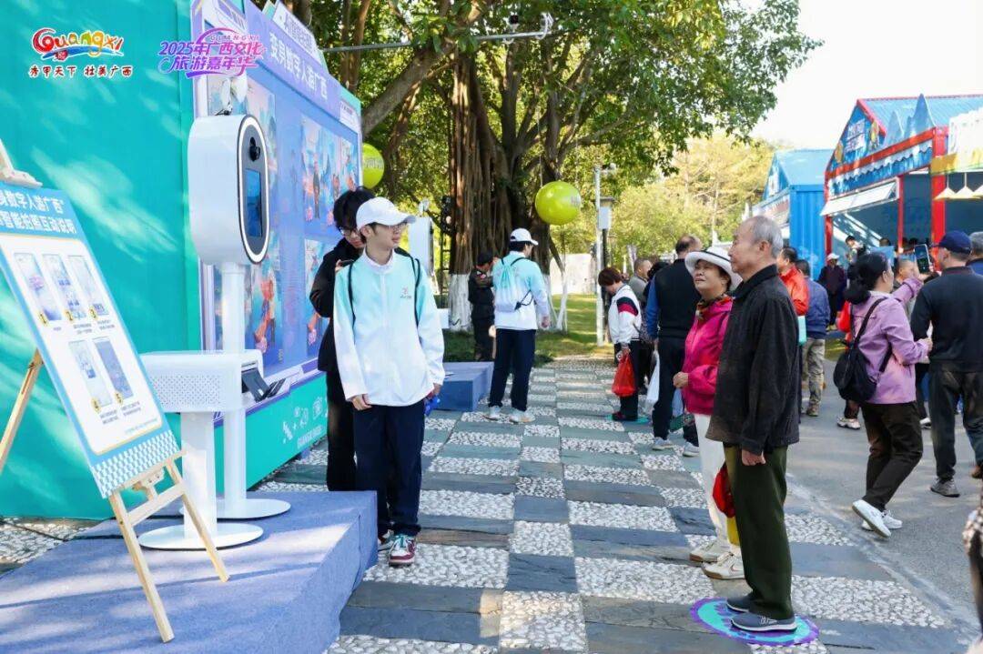 “变身数字人游广西”拍照区前排起长队,游客可选择桂林山水、北海银滩等14地市地标作背景,生成卡通风格数字人照片。不少游客现场分享至社交平台,用科技留住与广西的美好邂逅。