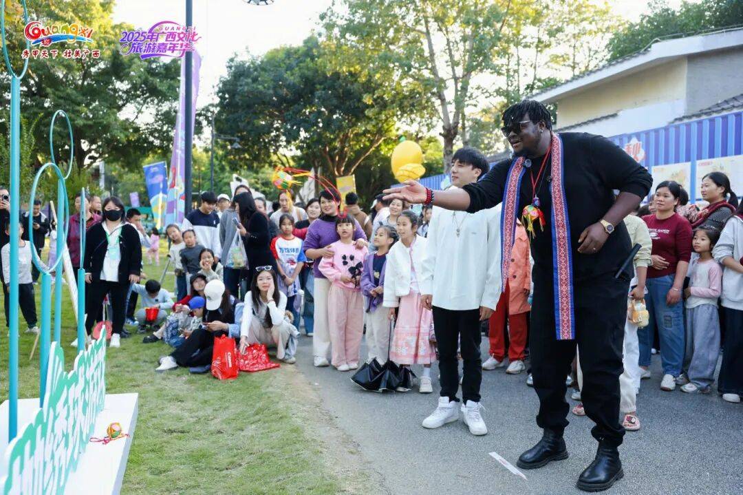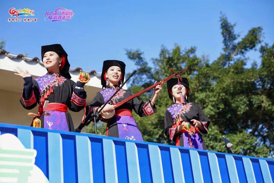 在互动区的舞台上,身着壮族服饰的姑娘们更添亮色,她们轮番登场,嘹亮的山歌顺着红城的风飘向人群,独弦琴的婉转旋律裹着独特韵味,轻易便勾住游人脚步,瞬间将现场氛围推向高潮。