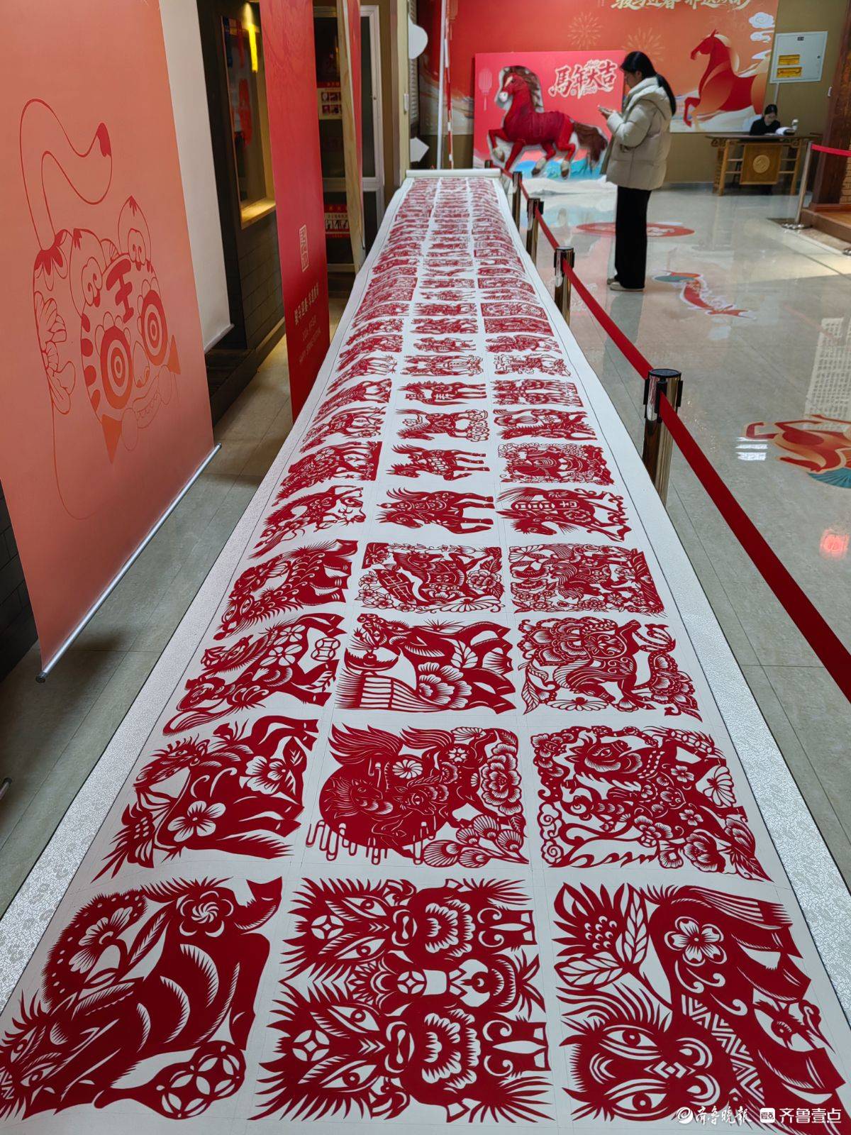 春节期间,山东省文化馆“骏马迎春·非遗焕彩”展览启幕,马年“话马”成最大亮点。展厅内,剪纸长卷铺展千里气象,彩陶盘上骏骥踏云而行,扎染绣品里神驹灵动多姿,还有泥塑石绘等非遗作品齐聚。或奔腾或伫立的骏马,承载着匠人巧思,将传统技艺与马年吉庆相融。市民驻足观赏,在指尖非遗中感受新春年味,于万马奔腾的意象里,许下对新岁的美好期许。 王平 摄