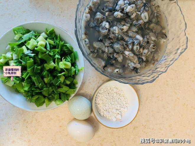 原料:海蛎肉、红薯淀粉、青蒜苗、鸡蛋、食盐、胡椒粉、番茄酱、食用油