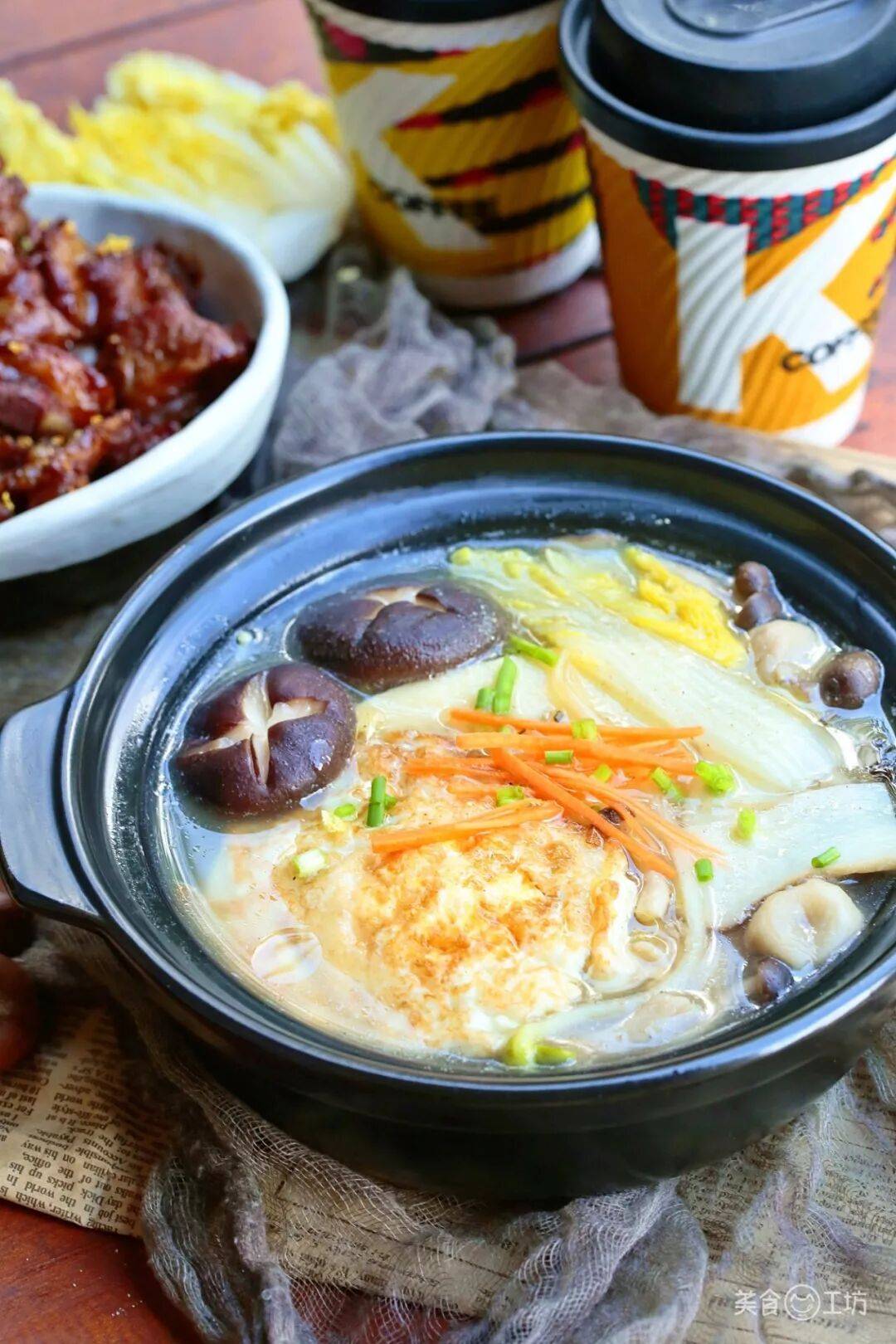 当然,如果换个角度来看,佛跳墙好像是一锅煮得稀巴烂的高级大杂烩了。既然如此,即便没有珍贵的配料,汤头的鲜美用素菜也能熬的出来~