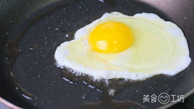 5.炸好的葱油先倒出一半,留出底油煎两个荷包蛋。