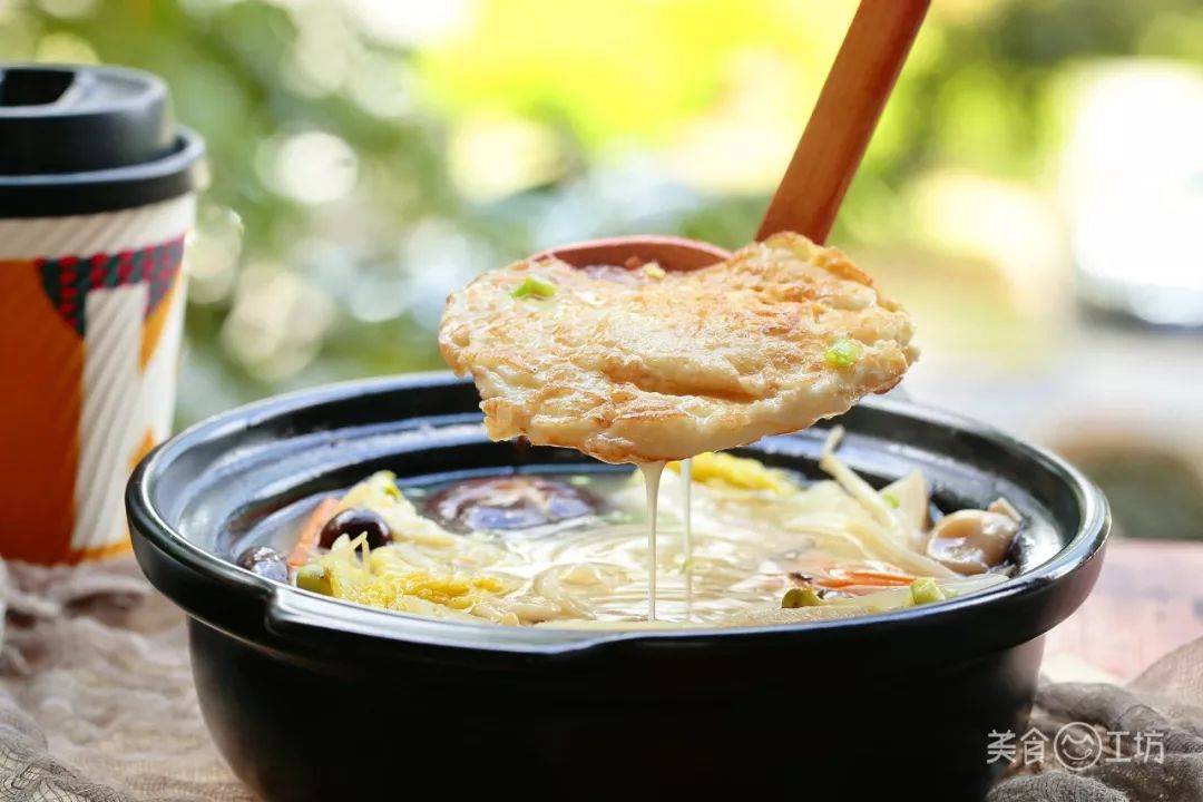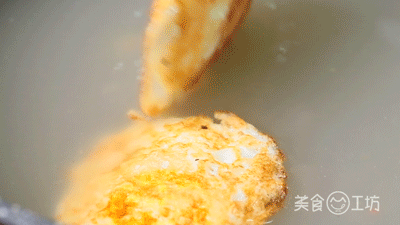 荷包蛋焦脆的外壳被汤汁浸润,但依然阻挡不了它的香味。